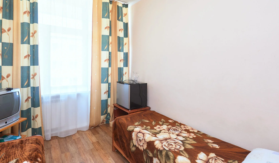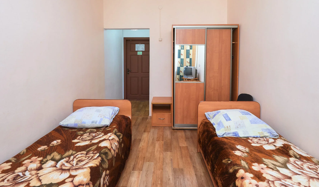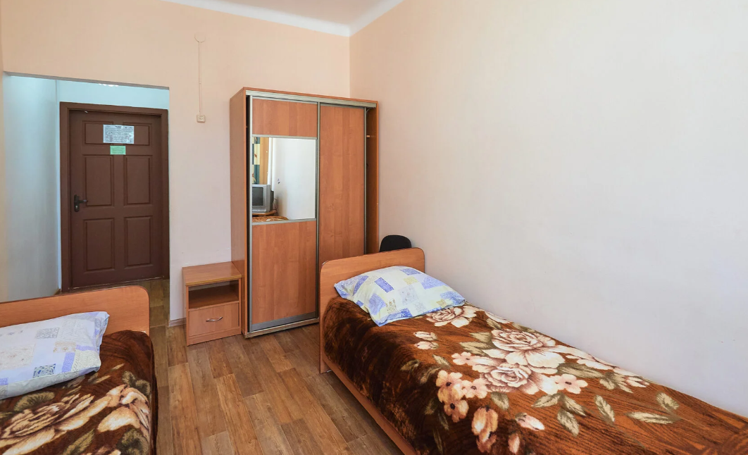 2 осн. места. Мебель: кровати односпальные, прикроватные тумбочки, стол, шкаф. Оборудование: телевизор, холодильник. Санузел. Сервис: смена полотенец, смена постельного белья, уборка номера.