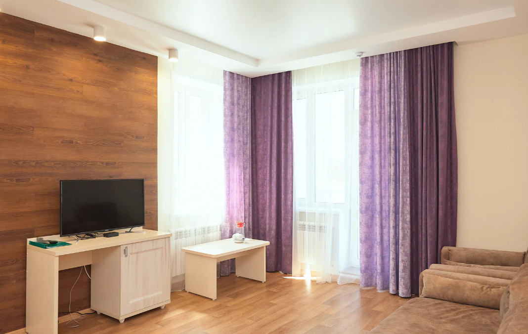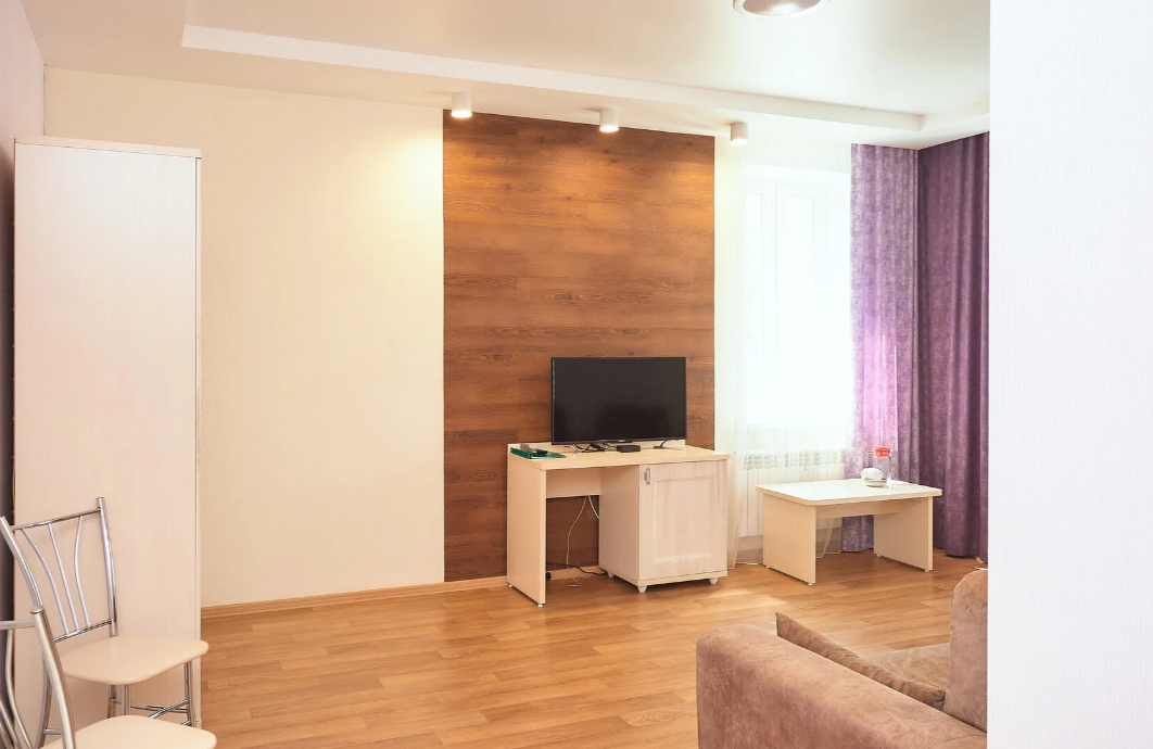 2 осн. места. Мебель: кровать двуспальная, набор мягкой мебели, прикроватные тумбочки, стол, стулья, шкаф. Оборудование: набор посуды, телевизор, холодильник. Санузел: с душевой кабиной, фен. Сервис: смена полотенец, смена постельного белья, уборка номера.