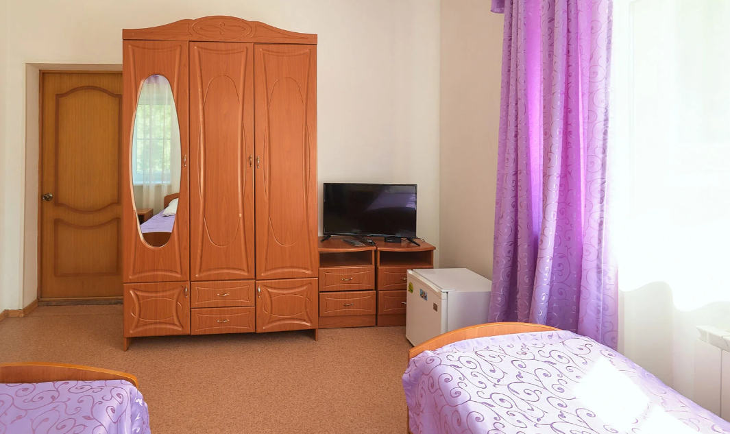 2 осн. места. Мебель: кровати односпальные, прикроватные тумбочки, стол, шкаф. Оборудование: телевизор, холодильник. Санузел. Сервис: смена полотенец, смена постельного белья, уборка номера.